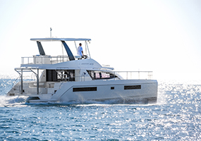 The stepped hull design adds interior volume above the waterline, allowing for roomier accommodations in the hulls without sacrificing the performance of the yacht. With narrower hulls and less wetted surface below the waterline, the Leopard 43 PC reaches an impressive maximum speed of 24 knots and maintains exceptional fuel efficiency consistent with all Leopard power catamaran models.